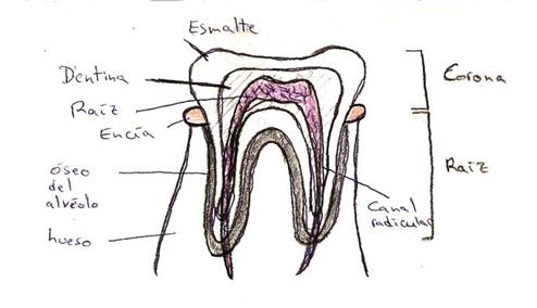 En esta actividad el alumno debe buscar información en Internet para conocer cómo es la estructura de un diente e identificar cada una de sus partes realizando un dibujo (Figura 1). A continuación, debe proponer hipótesis que justifiquen en qué parte del diente se inicia el ataque y cómo tiene lugar su evolución. Esto es importante porque implica que debe ordenar cada una de las partes del diente según crea se verán afectadas.