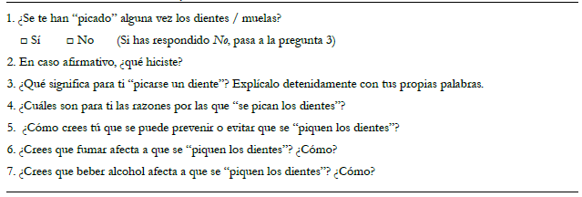 Actividad 1: ¿Cuáles son mis ideas y hábitos sobre el problema de la caries?