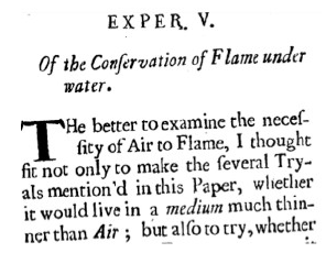 Boyle, R. (1673). Experiment V. Of the conservation of flame under mater. Tracts written by the honourable Robert Boyle containing new experiments touching the relation betwixt flame and air.