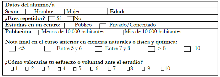 - Cuestiones sobre los contenidos científicos impartidos en Física y Química.