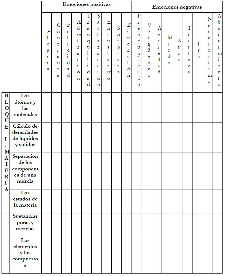 Para conocer las emociones que experimentaban los alumnos de ESO hacia los contenidos de Física y Química, se revisó y analizó el currículum de Educación Secundaria atendiendo al Real Decreto 83/2007. En la Tabla 3 se muestran los contenidos correspondientes al primer bloque.