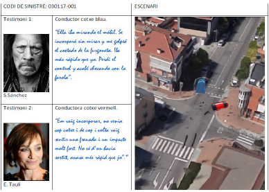 Se ha elaborado una secuencia didáctica titulada CRASH! alrededor del peritaje de accidentes automovilísticos, como estudio de caso dirigido. En la secuencia (materiales disponibles[1]) se propone a los alumnos que participen como peritos en la resolución de tres casos de accidentes automovilísticos, simulaciones creadas ad hoc (figura 1). Para cada caso disponen de varios tipos de evidencias (testimonios de los conductores, posición de los coches después del accidente, masa de los coches, etc.).