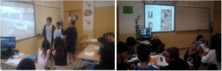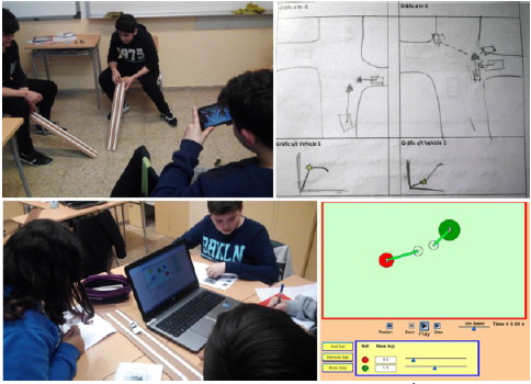 En esta etapa, los equipos de peritos empiezan a trabajar en los casos de forma autónoma (figura 5), teniendo a su disposición un simulador virtual de choques, las rampas y coches de juguete y las informaciones de cada caso. Los alumnos intentan determinar qué versión del accidente es pausible con los datos disponibles cambiando parámetros tentativamente de forma razonada en base a los modelos científicos.