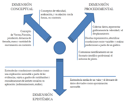 El desarrollo de la competencia científica implica el uso de modelos científicos, pero también el desarrollo de habilidades y estrategias de construcción de conocimiento (Jiménez-Aleixandre 2011). La OCDE (2013) propone estructurar el desarrollo de la competencia científica en tres dimensiones, que pueden constituir un marco operativo para la evaluación y el diseño de actividades (Garrido y Simarro 2014). La dimensión conceptual comprende el dominio de conceptos y modelos científicos y su aplicación a contextos reales. La dimensión procedimental incluye las prácticas y habilidades de razonamiento científico en que se basa la investigación empírica. La dimensión epistémica trata el marco lógico y social en que se desarrollan las preguntas y teorías y la naturaleza de la ciencia. Si bien este marco de trabajo es una orientación útil para determinar qué aspectos deberíamos desarrollar para promover la competencia científica, el tipo de experiencias o actividades que llevan a ello es un tema más complejo.