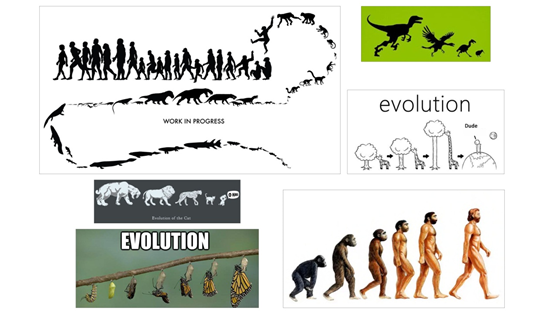Diagnosis: al arribar a la estación, los alumnos fueron recibidos por un expositor-divulgador que brindó una charla de 5 minutos cuya finalidad fue introducirlos a la actividad y evaluar su conocimiento previo del tema. Durante esta etapa, un investigador registró la información con la que arribaban los educandos. Se realizaron una serie de preguntas abiertas respecto al tema a tratar basándose en imágenes populares sobre evolución y filogenia (algunas con conceptos erróneos implícitos, ver Fig. 4).