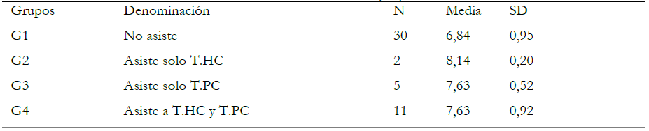 Para abordar este objetivo se establecieron cuatro grupos dependiendo de la asistencia a los talleres de algún integrante de cada equipo de trabajo (tabla 3).