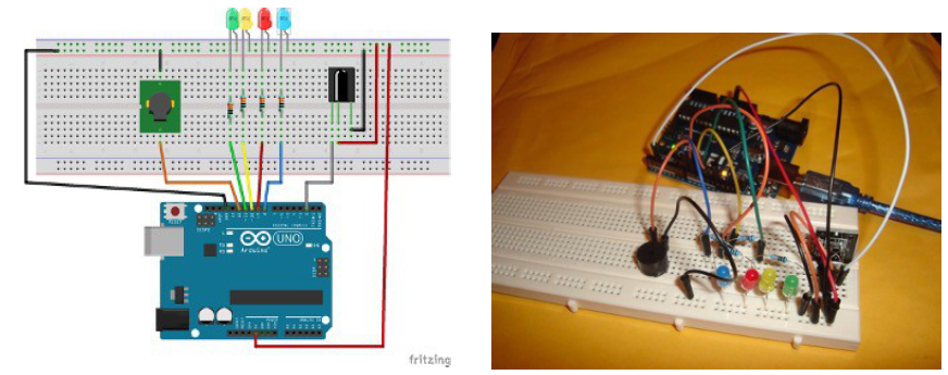 El esquema eléctrico se muestra en la figura 3 y en la figura 4 se muestra el circuito real.