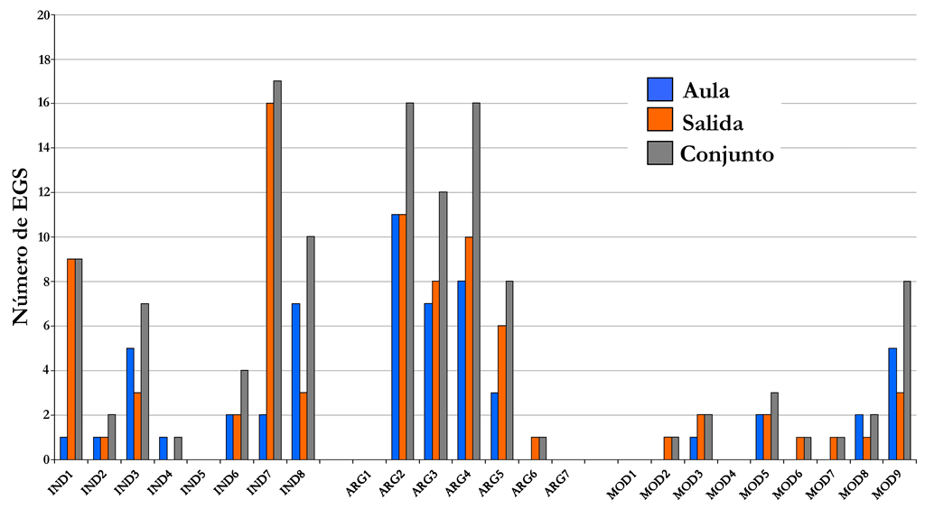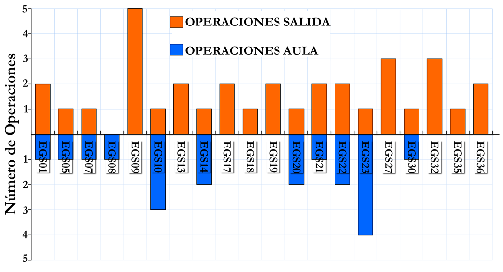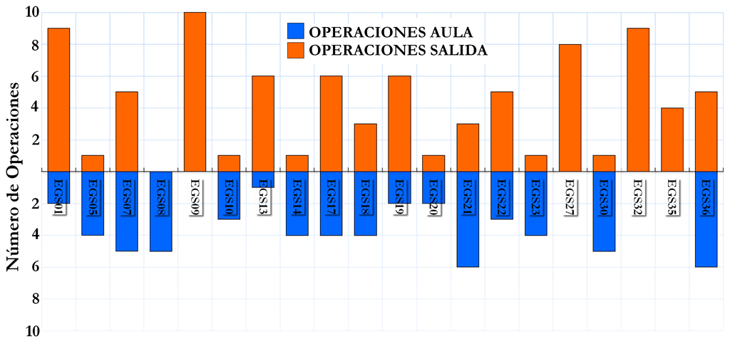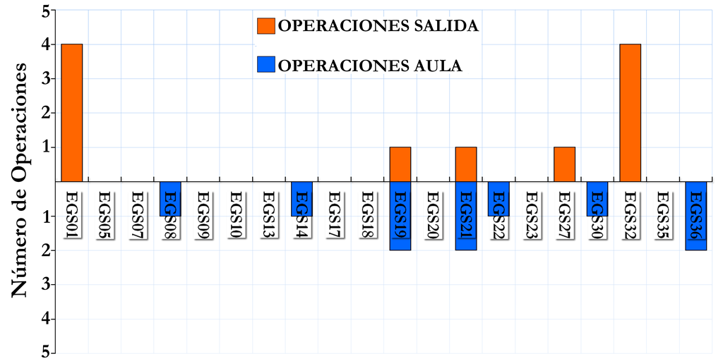 En la figura 8 se muestra el número de operaciones de modelización identificadas en cada EGS tanto en la salida como en el aula.