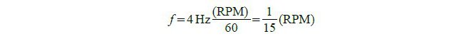 Recordemos que el MHM es un modelo sincrónico cuyo rotor es un imán permanente con 4 pares de polos magnéticos dispuestos radialmente. Como también se adelantó, su estator está conformado por ocho polos a partir de los dos de la propia bobina. Con esta disposición puede entenderse que, girando el rotor, se obtiene una fem en la bobina con una variación periódica de cuatro ciclos por vuelta (se replica idéntica configuración del enfrentamiento de polos cada cuarto de vuelta). De este modo, se lo puede concebir como un interesante generador didáctico de CA (alternador). Con los datos anteriores se deduce que su frecuencia, como función de la velocidad de rotación, estará dada por: