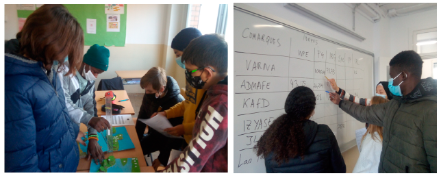 Cada equipo anotó en la pizarra su índice de riesgo y el cálculo realizado para cada comarca (Figura 3), lo que llevó a discusiones de interés sobre el concepto de índice. Para algunos índices los valores para distintas comarcas diferían en más de dos órdenes de magnitud. Además, en función de las variables elegidas, algunos índices tenían utilidad para los riesgos geológicos naturales, mientras que otros tenían más utilidad para los riesgos antrópicos. La conversación se concluyó con la síntesis que algunos índices pueden ser más adecuados que otros para algunos contextos, y que combinar (sumar o multiplicar índices para generar un índice complejo) puede ser un modo de ganar robustez. También se relacionó el concepto de índice con otros índices (la evolución económica de la bolsa, la pobreza, la evolución de la pandemia Covid,…) discutiendo qué variables podrían participar en ellos.
