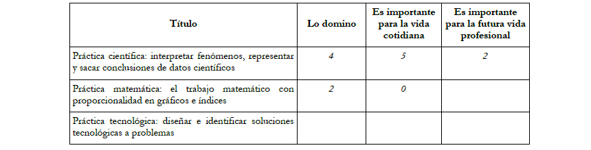 • Contextualizar las prácticas propias de la geología, las matemáticas y la tecnología y contrastar el nivel de desempeño del alumnado y su autopercepción.