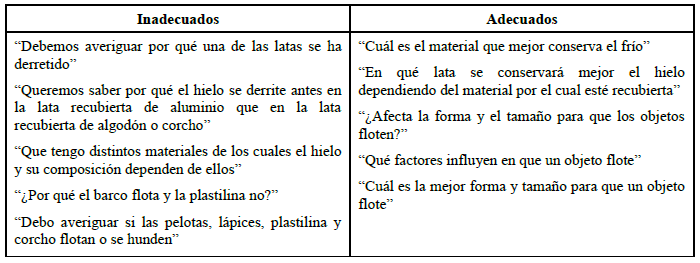 Sin embargo, la práctica de la secuencia propuesta redujo estos valores al 60 y al 26 % en 2º y 3º, respectivamente, siendo la mayor parte de las respuestas clasificadas como correctas (tabla 8). Se consideran adecuados aquellos enunciados que hacen referencia a que el problema a investigar es: cómo se conserva o mantiene mejor el hielo (C1.1), o los factores que afectan a la flotabilidad de los objetos (C2.1).