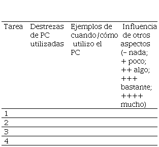 2) Identificar qué destrezas de PC se ponen en práctica en las distintas tareas.