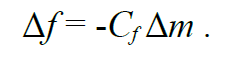 (1)Donde C. es el factor de sensitividad del cristal y es una constante que depende del espesor y las propiedades intrínsecas del cristal de cuarzo (Rodahl et al., 1995; Flores-Flores et al., 2010). Pero en el caso de muestras en fase líquida la ecuación (1) es válida únicamente en películas infinitesimalmente delgadas poco viscosas con impedancia acústica cercanas a las del cuarzo (Bruckenstein y Shay, 1985), debido a factores como: las propiedades del líquido interfacial, el acoplamiento en el cristal, y la morfología de las películas superficiales (Nomura y Okuhara, 1982; Kanazawa y Gordon II, 1985).