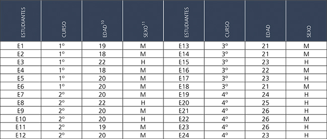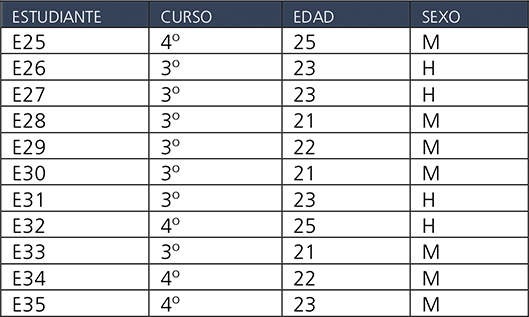 El siguiente cuadro recoge las características de los estudiantes entrevistados:
