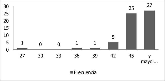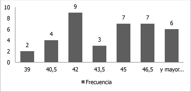 Cuando centramos la atención en los aciertos en lugar de en su contraparte (los números resultantes eran así más manejables), advertimos, una vez examinados los histogramas de las figuras 1 y 2, que sus distribuciones de frecuencia entre oyentes no se asemejan a la normal o gaussiana en ninguno de ambos niveles, siendo el intermedio el más disímil.