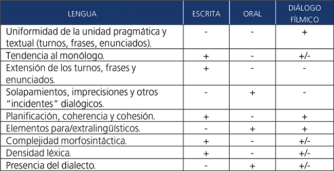Además, el PCIC atiende a la organización de los géneros según sea la manera en la que se transmiten en la lengua, es decir, ya sean orales o escritos. Se ocupa incluso de los géneros mixtos, en otras palabras, de aquellos que no son solo orales o escritos. Así pues, se puede encontrar un texto escrito para ser dicho como si no fuera escrito (anuncios publicitarios en radio y televisión, guiones de películas, etc.); un escrito para ser dicho (discursos políticos, informativos radiofónicos, etc.) o uno dicho para ser leído (entrevistas y discursos publicados en periódicos) (PCIC: 323). Por lo tanto, como hemos comentado anteriormente, en el caso de la recreación fílmica y televisiva, se procede a un trasvase de información de un texto escrito a uno audiovisual que pasa a su vez por otro texto escrito que es el guion televisivo o cinematográfico.
