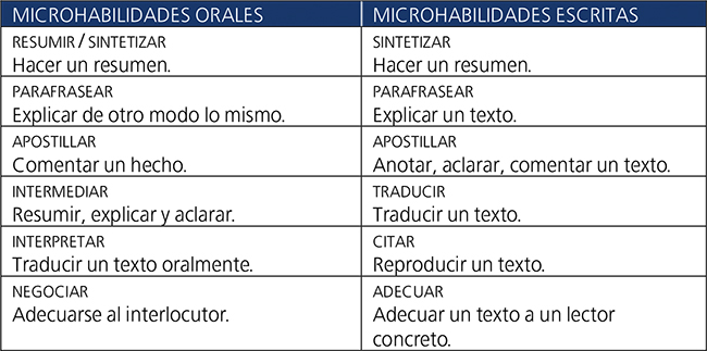 En el currículo de la Escuela Oficial de Idiomas no se aborda la noción de género con tanta exhaustividad como lo hace el PCIC, pero sí se maneja el término procedente de la lingüística textual de macrofunción, es decir, las funciones o intenciones de habla que se pueden combinar en secuencias más amplias entre las que se destacan describir, narrar, exponer, argumentar y conversar (Consejería de Educación: 60-61). Dicho en otras palabras, las estructuras lingüísticas que se utilizan en función de una situación comunicativa.