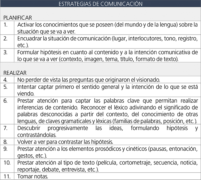 Otro documento curricular significativo en este sentido es el de la Escuela Oficial de Idiomas, en concreto, hemos trabajado con el de la Comunidad de Madrid, que retoma la definición de texto del MCER y la clasificación del PCIC entre textos orales y escritos. Los textos orales se dividen en aquellos que practican la interacción (conversaciones formales e informales, debates, discusiones, entrevistas, etc.); la comprensión como oyente (y aquí encontraríamos las series televisivas y las películas en lengua estándar, entre otro tipo de textos como debates, entrevistas, mesas redondas, letras de canciones, etc.) y la producción (exposiciones orales, narraciones, descripciones, etc.).