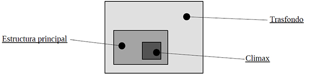 El texto del enunciador, al igual que el cuadro de un artista, diferencia lo que quiere poner en realce de lo que no. Las formas a las que quiere que el espectador, el coenunciador, preste atención tienen unos colores más fuertes, mientras que las que considera trasfondo de la narración tienen unos colores más claros. Sin embargo, los elementos de trasfondo, aunque secundarios, son necesarios en la narración. Sin ellos, el enunciador no podría crear el contraste necesario en la mise en relief de la estructura informativa principal.