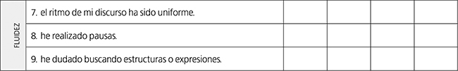 2) qué aspectos de la autoevaluación son relevantes en un determinado momento del proceso de enseñanza-aprendizaje: ¿todos los propuestos? ¿O, por ejemplo, solo los correspondientes a la fluidez?