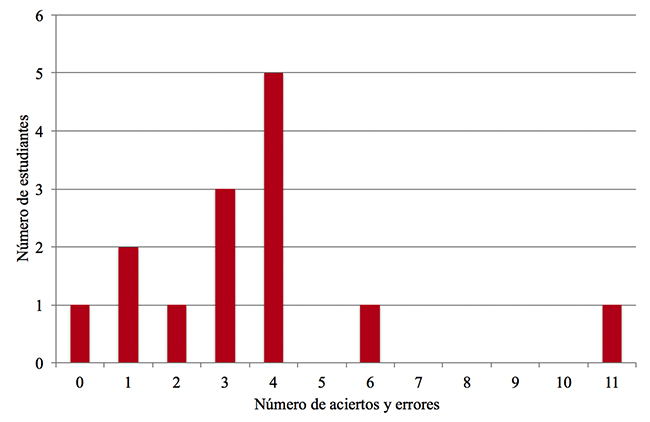 Como datos extremos, dos de los estudiantes dedicaron su uso once y seis veces respectivamente. Concluimos que los aprendientes a la hora de escribir sus composiciones se arriesgaron y tuvieron presente usar estas nuevas formas adquiridas con los verbos, cuyo predicado exige indicativo/subjuntivo en la oración subordinada sustantiva.