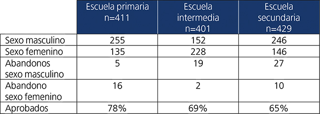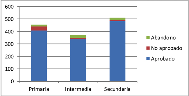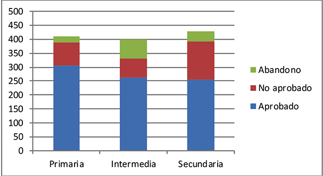 El número de abandonos en cada uno de los niveles de estudio no fue tenido en cuenta para medir el nivel de aprobación del curso.