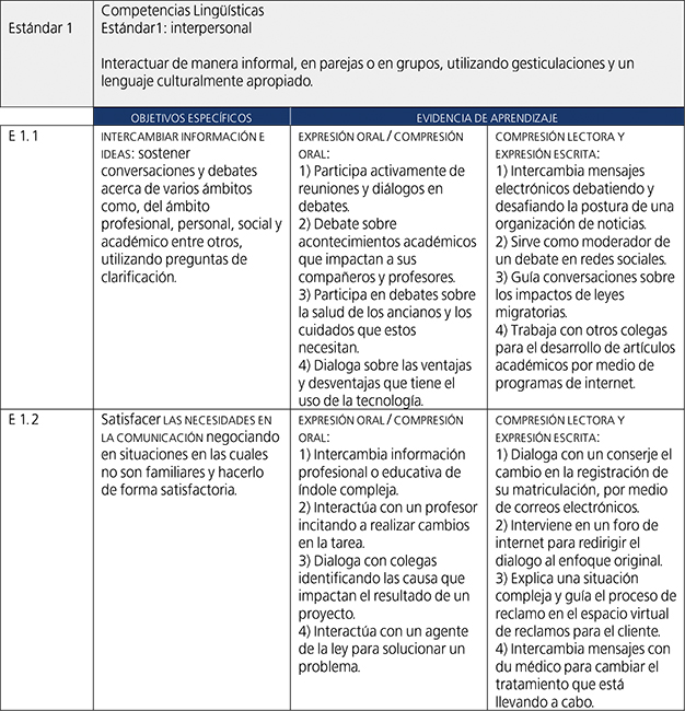Lomas, C. y Aliagas, C. (2012) definen los estándares de aprendizaje en la educación lingüística como bloques que sostienen, desarrollan y generan más aprendizaje en los estudiantes. Estos estándares generan, asimismo, que el desarrollo de la lengua trascienda los salones de clase cuando se ponen en práctica en las distintas comunidades. También mencionan que lo previamente dicho no podría suceder si no se tuviera un orden curricular con estándares de aprendizaje bien definidos, concretos y evaluables.