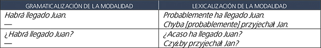 Uno de los primeros problemas que ha de afrontar el aprendiz nativo del idioma polaco a la hora de estudiar las formas de expresar la modalidad epistémica en español es su gramaticalización. Aunque también en polaco existen las categorías morfológicas que pueden usarse con el fin de expresar dicha modalidad, el idioma polaco, como ya hemos mencionado, en la mayoría de los casos opta por medios léxicos, tales como verbos, sustantivos, adjetivos, adverbios o modulantes modales. Esto se debe principalmente a la escasez de las formas gramaticales que representan el valor epistémico en polaco. Es más, el polaco no admite la gramaticalización del componente modal en todos los contextos. Esta característica del sistema lingüístico polaco se puede observar, entre otros casos, con respecto a los hechos anteriores a otra acción o al momento de habla. Dicho problema se puede observar en los siguientes ejemplos en los que, en ambas oraciones en polaco, la modalidad puede ser realizada solo con medios léxicos, con la partícula chyba y con la secuencia de partículas ż-by respectivamente: