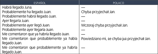 Sin embargo, en cuanto a los hechos pasados, mientras el español dispone de toda una gama de expresiones, tanto gramaticales, como léxicos, el idioma polaco tiene que conformarse con los medios léxicos.