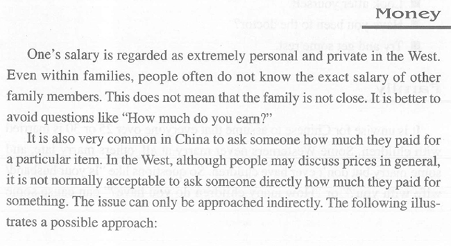 La orientación cognitiva es recurrente en la mayoría de los manuales chinos como demuestra también el libro de texto publicado por Hu y Herd (2006). En este manual se recogen ampliamente los conocimientos socioculturales más susceptibles de crear malentendidos entre las culturas occidentales (británica y estadounidense principalmente, por tratarse de inglés como LE) y la china: convenciones estipuladas como saludos, romper el hielo en una conversación, la realización de cumplidos, los agradecimientos, pedir perdón, etc.
