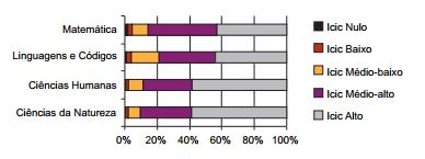 Considerando as quatro principais áreas que concentram a maioria dos professores entrevistados, nota-se que os grupos com maior porcentagem de indivíduos com Icic alto são Ciências da Natureza (58,7%) e Ciências Humanas (58,6%).