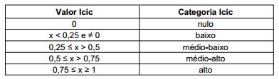 Se analisados os grupos de Icic individualmente, mais uma vez, as porcentagens das maiores frequências aumentam nos grupos conforme se eleva a categoria de Icic: