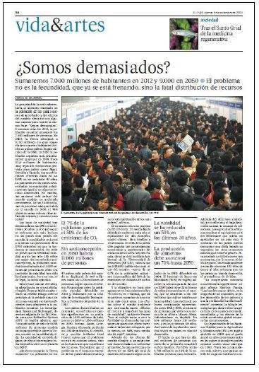 Interpretar los datos y estimaciones que se aportan en el reportaje es una de las primeras propuestas que se plantean a los alumnos. Dichos datos no se refieren sólo a predicciones sobre el futuro, sino que incluyen tendencias poblacionales desde mediados del siglo XIX que hacen particularmente interesante para los alumnos la indagación sobre los planteamientos históricos de las hipótesis maltusianas. El reportaje de referencia para este material didáctico lleva como anexo una interesante entrevista al biólogo de poblaciones Paul R. Ehrich, que incluye provocativas consideraciones para que los alumnos puedan analizar las consecuencias de los desequilibrios entre natalidad y jubilaciones en los países desarrollados. En este material didáctico también se plantea la posibilidad de que se hubiera encargado a los alumnos la preparación de la agenda de una reunión internacional en la que se estudiaran y propusieran posibles soluciones a los problemas demográficos en el horizonte de 2050.