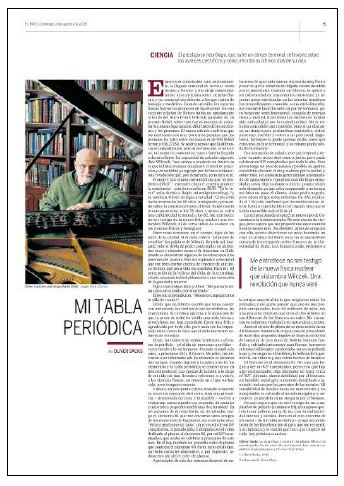 Dos artículos testamentarios de Oliver Sacks, el neurólogo, el divulgador científico y el amante de la vida. En uno, la tabla periódica le sirve de metáfora para describir sus últimos años de vida. En el otro encuentra en Hume el tono adecuado para su despedida. Junto a ellos, un reportaje sobre su vida en el momento de su muerte y también dos artículos de opinión sobre su legado: uno desde las ciencia y otro desde las letras. Tales son los textos de Javier Sampedro (2015), de Juan José Millás (2015), de Guillermo Altares (2015) y del propio Oliver Sacks (2015), de los que consta este documento periodístico que sirve de base para otro de los materiales didácticos del séptimo contenedor de este proyecto.[11]