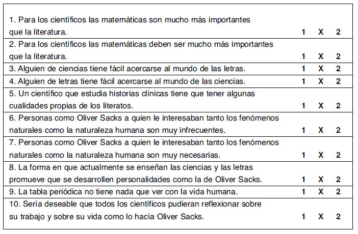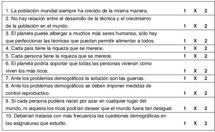 Entre las actividades que se proponen en muchos de estos materiales, figura una quiniela valorativa con diez frases como la que se incluye a continuación. Sobre cada una de ellas los alumnos pueden pronunciarse individualmente para, con esas valoraciones, plantear un debate abierto en el aula.