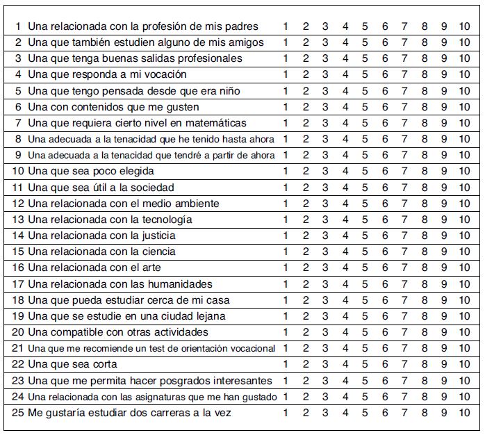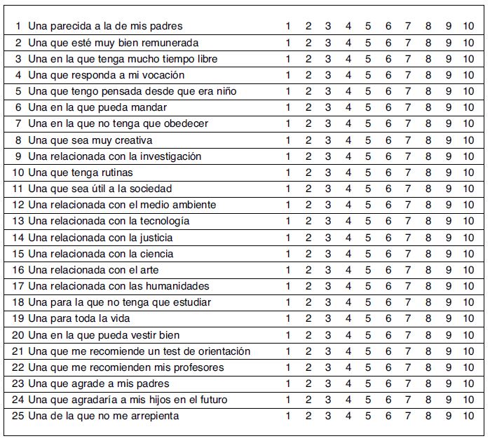 En la medida en que estas actividades que tienen que ver con la formación y la orientación educativa y profesional pueden ser especialmente relevantes para los adolescentes, entre las actividades de este material didáctico se les ofrece también una pequeña guía para valorar diversos elementos importantes en las decisiones que han de tomar en relación con su futuro personal. Para ello es especialmente útil una batería de aspectos a valorar sobre la profesión que les gustaría ejercer en el futuro y sobre los estudios que les gustaría cursar. Las dos tablas siguientes, en las que cada alumno ha de valorar de 1 a 10 la importancia que concede a cada aspecto, pueden ser interesantes en este sentido y propiciar interesantes diálogos en el aula y con la propia familia.