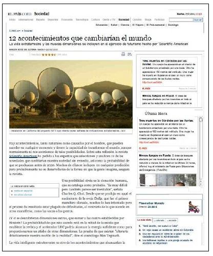 ¿Qué acontecimientos podrían cambiar drásticamente el mundo en los próximos cincuenta años? En el artículo de Ruiz de Elvira (2010) que sirve de base a este material didáctico del séptimo contenedor, se aborda esta cuestión a partir de las respuestas que algunos expertos dieron a la revista Scientific American cuando se les planteó ese interrogante, al que respondieron señalando la probabilidad de que cada uno de los acontecimientos escogidos pudiera llegar a suceder en ese plazo.[7] La clonación humana, el hallazgo de vida extraterrestre o determinadas catástrofes ambientales son algunos de los sucesos candidatos a ser considerados como los grandes acontecimientos históricos del futuro a juicio de los expertos aludidos en el reportaje.