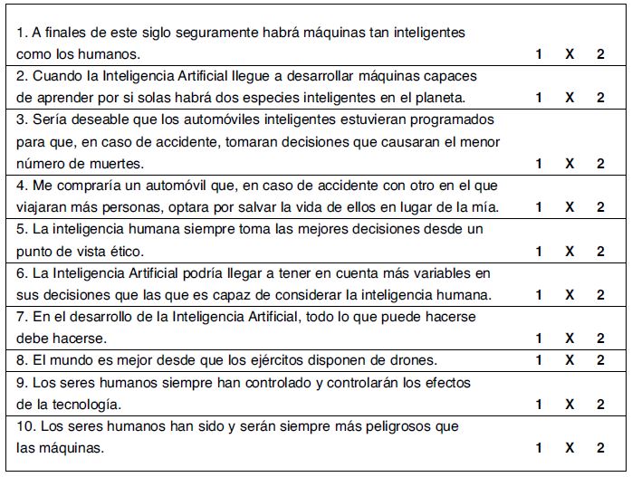 histórica sobre las actitudes de los luditas ingleses de hace dos siglos y su relación con las actitudes tecnófobas que eventualmente surgirían ante un escenario así, son otras de las actividades que se propone a los alumnos en este material didáctico. Como también la discusión sobre la conveniencia de que existan equipos de investigación tan ambiciosos como el de Nick Bostrom o las distintas apreciaciones que los alumnos pueden hacer en relación con los escenarios prospectivos relacionados con la inteligencia artificial y el futuro de la humanidad que se plantean en las diez frases de la quiniela valorativa que también incluye este material.