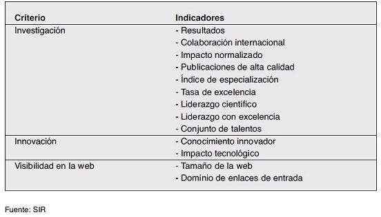 El grupo denominado SCImago, conformado por investigadores españoles en bibliometría, ha desarrollado una plataforma a partir de la base de datos Scopus, de Elsevier en la que se presentan rankings de publicaciones recortados por instituciones o países. SCImago Institutions Rankings, es uno de ellos. Se trata de una herramienta elaborada con el propósito de que sirva como instrumento para la evaluación de las universidades a nivel mundial y también a las instituciones dedicadas a la investigación. Con este ranking se categorizan instituciones de acuerdo con un conjunto de rangos como investigación, innovación y visibilidad web. Los rangos de las instituciones de para cada uno de los indicadores ha sido normalizado en una escala de 0 a 100. La evaluación de cada indicador determina la posición de cada institución con respecto a otras para facilitar estudios comparativos. Las instituciones se han seleccionado con el único criterio de ser instituciones de investigación con más de cien publicaciones incluidas en la base de datos de Scopus durante el último año del periodo de tiempo, que generalmente consta de cinco años. Las instituciones han sido segmentadas por los países a los que pertenecen, incluyendo instituciones multinacionales (MUL) que no pueden ser atribuidas a cualquier país.