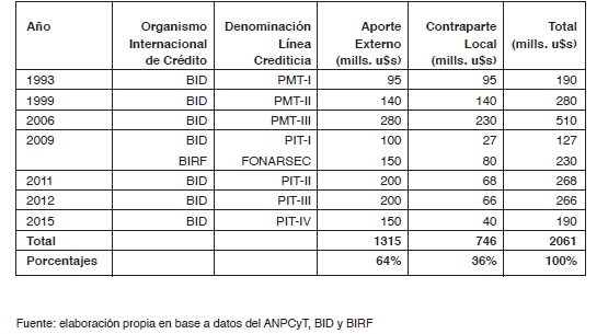 En 1993 la Secretaria de Programación Económica del Ministerio de Economía, tras un año de negociaciones, acordó con el BID un crédito externo por 95 millones de dólares —con una contraparte nacional de igual monto aportada por el Tesoro nacional y el Banco de la Nación Argentina (BNA)— para implementar el PMT-I. En su formulación original contemplaba dos componentes: i) de apoyo a la innovación y modernización tecnológica del sector productivo a través de financiamiento crediticio (de recupero contingente y obligatorio), cuya unidad ejecutora era el entonces recientemente creado Fondo Tecnológico Argentino (FONTAR) a través del BNA; y ii) de apoyo a instituciones públicas o entidades privadas sin fines de lucro de I+D cuya unidad ejecutora eran la SECyT/CONICET a través de aportes no reembolsables.12