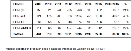 En 1996, en el marco de la denominada segunda reforma del Estado, se produce una profunda reforma institucional del sistema de CTI lo que dará lugar a la creación de la ANPCyT a través del Decreto N° 1.660. A través de dicha reforma se buscó incrementar la eficiencia del sistema a través de la diferenciación institucional de las funciones de formulación de las políticas, de financiamiento y de ejecución de actividades de CTI (Angelelli, 2011). Disponer de un organismo dedicado exclusivamente al financiamiento de las actividades de CTI demandó la reestructuración del PMT-I para que pudiera disponer de los recursos necesarios para el cumplimiento de su misión. De esta forma, el FONTAR es transferido a la órbita de la ANPCyT, y se crea un segundo fondo a su cargo: el Fondo para la Investigación Científica y Tecnológica (FONCyT), integrado con los recursos inicialmente asignados a la línea de créditos de recuperación contingente. Posteriormente, en 2006 se incorpora el Fondo Fiduciario de Promoción de la Industria del Software (FONSOFT), como resultado de la aplicación de la Ley 25.922, y en 2009 el Fondo Argentino Sectorial (FONARSEC) tras un acuerdo de crédito con el BIRF.13
