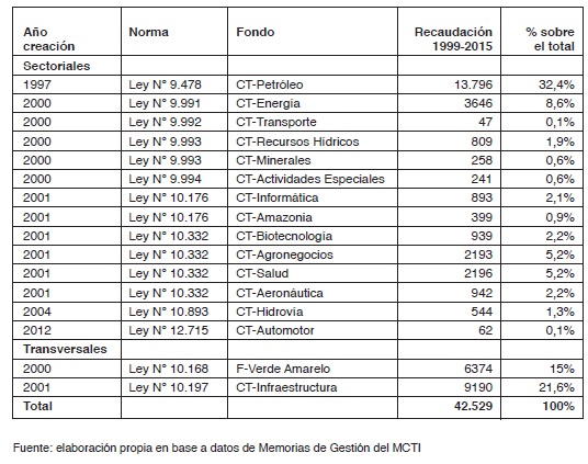 A fines del siglo pasado, se comenzó a discutir en Brasil el relanzamiento de su política de CTI atendiendo a la necesidad de incrementar las vinculaciones entre el sector público y el sector productivo, y a la vez, aumentar la competitividad internacional de las empresas. La principal restricción para avanzar en dicha dirección radicaba en el proceso de desinversión del sector iniciado a mediados de la década del 80 y las rigideces presupuestarias introducidas por las políticas fiscales y macroeconómicas del “Plan Real”. En este escenario, se decidió avanzar en un rediseño del sistema de financiamiento de las políticas de CTI a través de la creación de los FS, siguiendo el modelo del FS de Petróleo y Gas creado en 1997. Los objetivos declarados de este rediseño institucional eran incrementar el volumen de recursos disponibles para financiar las políticas de CTI, desacoplar dicho financiamiento de los vaivenes presupuestarios y permitir la participación del sector privado en el proceso de toma de decisiones en la asignación de los recursos. Ello implicaba reestructurar el FNDCT y su sistema de administración.