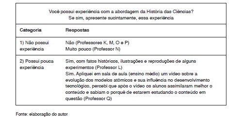 Embora 29% dos cursistas tenham afirmado possuir experiência com a HC em sala de aula, observamos que são experiências muito pontuais, tradicionais e anacrônicas, que não estimulam a prática reflexiva, pois os docentes estão, ainda, distantes da apropriação do conhecimento produzido pelos pesquisadores (Silva, 2008).