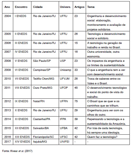 Este artigo parte da análise do Encontro Nacional de Engenharia e Desenvolvimento Social (ENEDS), com o intuito de compreender alguns dos caminhos contra-hegemônicos da engenharia brasileira nos últimos quinze anos. O evento, que acontece anualmente desde 2004, pode ser compreendido como um espaço de encontro de estudantes e profissionais da engenharia que almejam atuar em consonância com questões sociais, políticas, ambientais, etc.