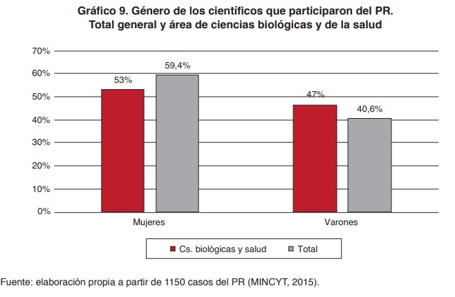 En relación con el género de los investigadores, las mujeres son mayoría en el total del PR, así como en el área de ciencias biológicas y de la salud. Sin embargo, están un poco menos representadas en esta gran área que en el total general.