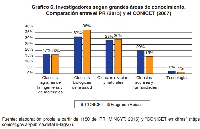 Nos interesa resaltar aquí, además, la alta selectividad del programa, ya que sigue la lógica de distribución por áreas del CONICET y expresa un rasgo de alta representatividad de las ciencias exactas y naturales en el sistema científico argentino. Asimismo, el rasgo selectivo emerge también del hecho de que la movilidad internacional es una característica presente en esta área más que en otras, de acuerdo con Luchilo et al. (2019).