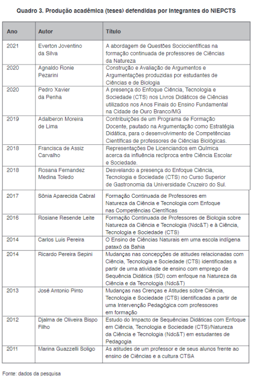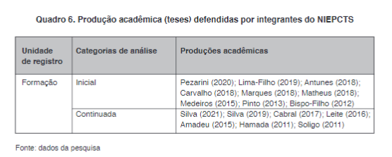 Quadro 6. Produção acadêmica (teses) defendidas por integrantes do NIEPCTS