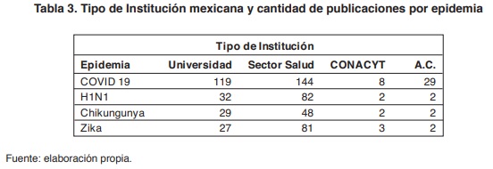 Reacciones de los investigadores de México en diferentes epidemias. Un estudio comparativo de las publicaciones ante H1N1, Zika, Chikungunya y COVID-19 *