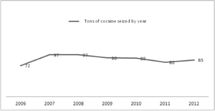 Thus, the use of the armed forces in some states of Mexico, especially border, exerted pressure on organized crime operating in them. This means that the more military presence there, unless border crossings are enabled for the transit of illicit trafficking and this causes a bottleneck, i.e. the convergence of routes within a few access roads and the resulting clash of groups to control them or facilitate the income from their illicit products. To increase the human and material costs of drug trafficking along the northern border of Mexico, as well as the degree of danger on the roads because of violence generated in disputes - added to the increasing US pressure to intercept Caribbean routes-, posters had to seek alternative routes to Mexico as the traditional gateway to North America, generating incentives for drug racking be relocated on the southern border, using Northern Triangle nations as a transit point for the purpose to control the route in its entirety, “turning this area into a bottleneck through which almost all the cocaine coming from South America, particularly in Bolivia, Colombia and Peru and destined for the United States” (Dudley, 2012a, p.10) as illustrated by the data given in Figure 2